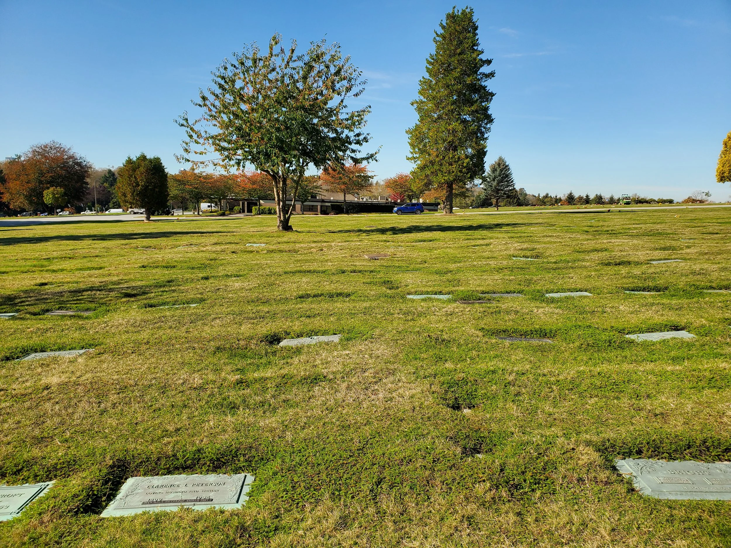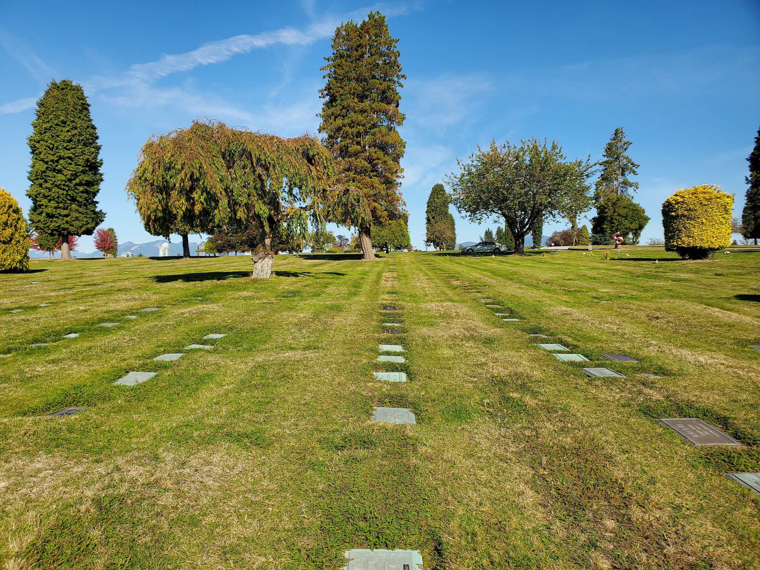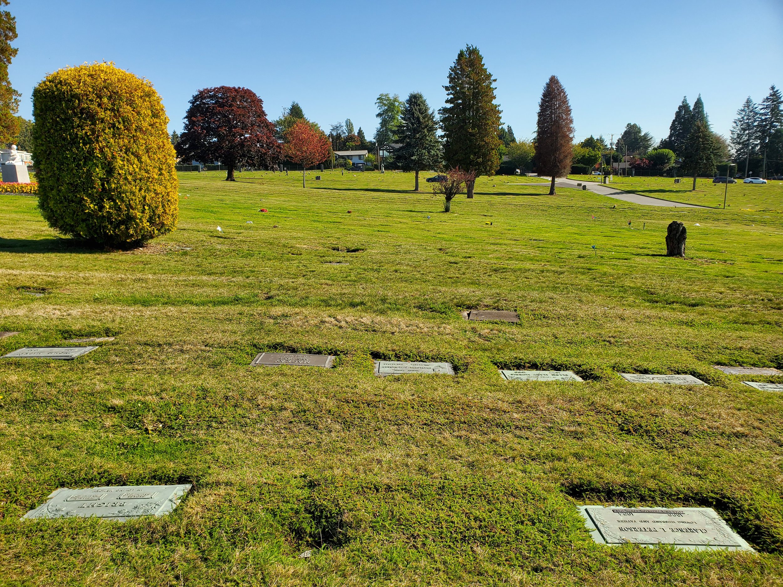 Outstanding value at Forest Lawn. East facing, full size plot. Bronze memorial plaques allowed (not included). Near the middle of the park. Contact us today to see the location.
