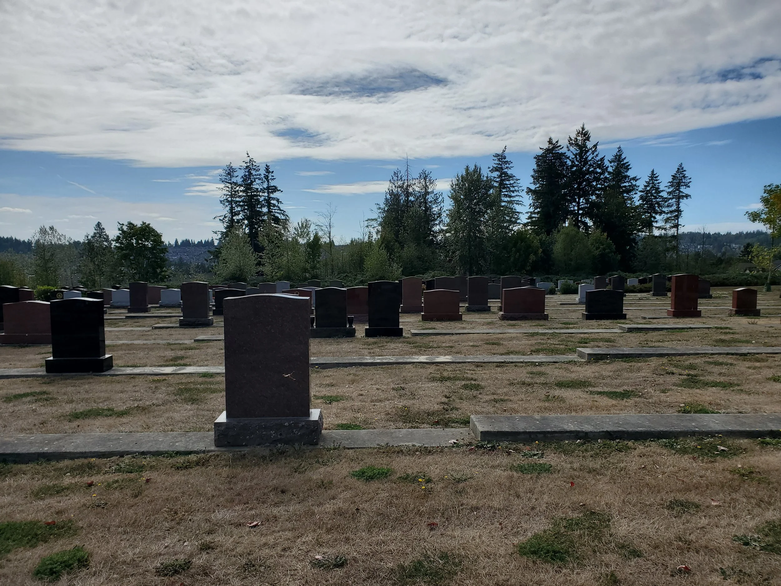 Upright granite monument permitted. Quality location in the southwest area of the park. Full size burial plot. South facing. Ask about the headstone, vault, and burial fee. Contact us today to see the location.